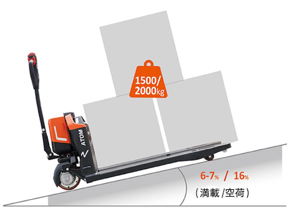 - 倉庫内のスロープや積み込み用プラットフォームでも安定した走行を実現